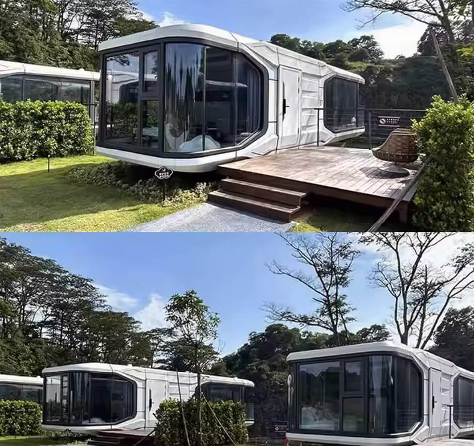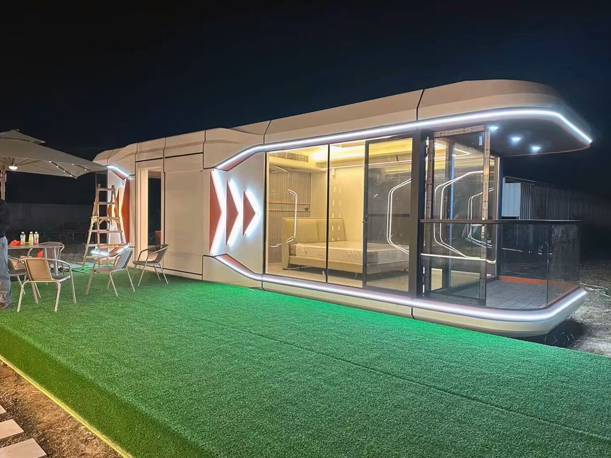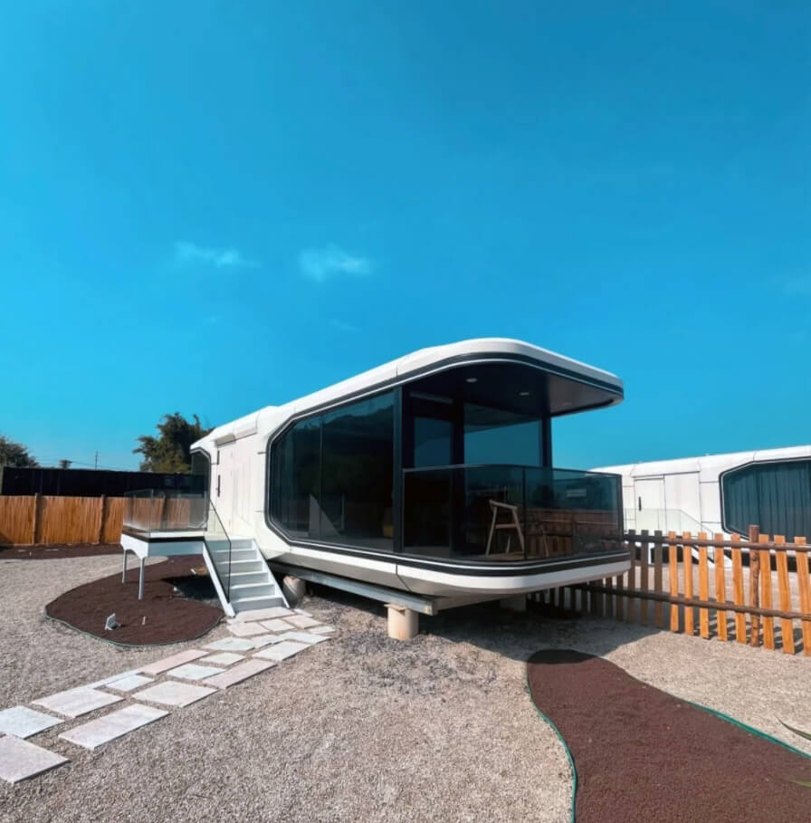 Nowoczesny, modułowy i przenośny domek-kapsuła.
